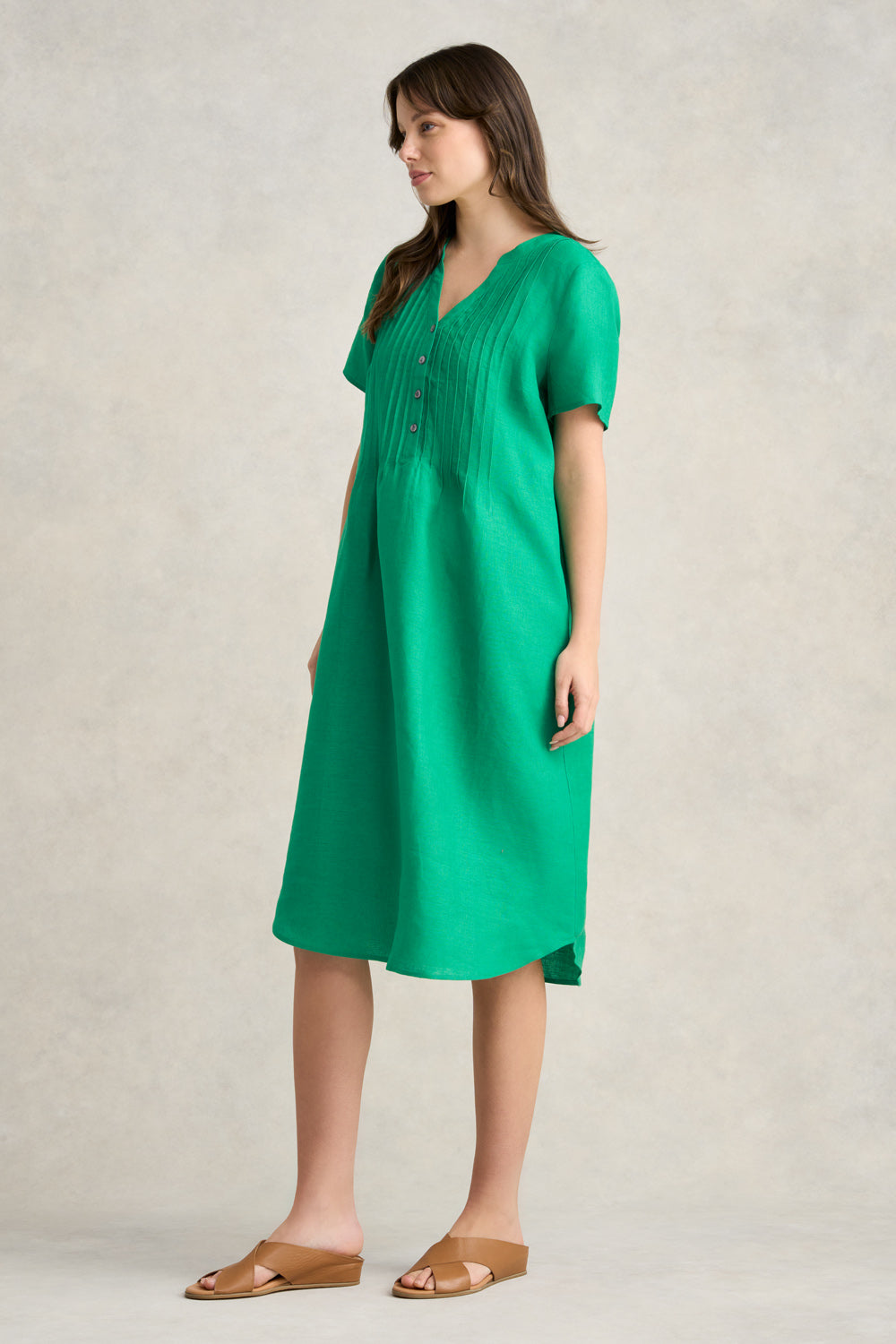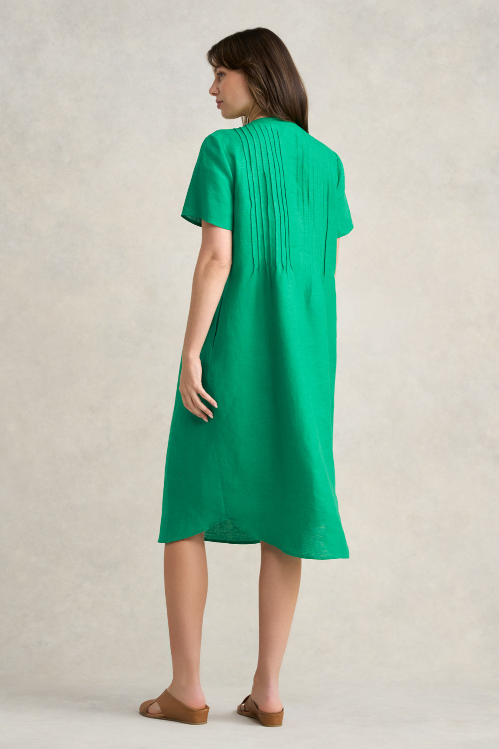 Pleated Front French Linen Dress - Vibrant Green